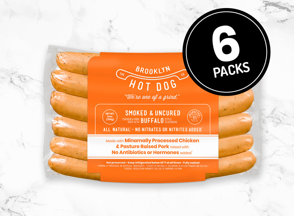 6 packs of Buffalo Chicken. 6 hot dogs per pack. Total of 36 hot dogs.